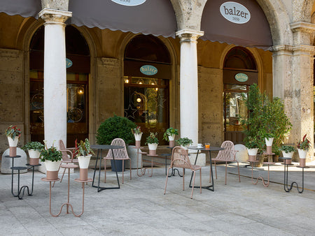 Among the offering, the Malvasia Riviera variant introduces a warmer and more tactile character: rather than the metal weave of the original Malvasia Chair, it employs a frame with a rope‑woven backrest, lending a natural, inviting texture to the seating. This subtle shift enhances its suitability for outdoor living, offering both style and comfort in equal measure.