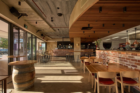 Furniture supplied by Furniture Options plays a key role in shaping the space. At the bar, Cava and Jasper Stools provide comfortable, stylish seating, while the dining room features Cava Side Chairs paired with NOROCK Trail Tables, balancing elegance with durability for everyday service.