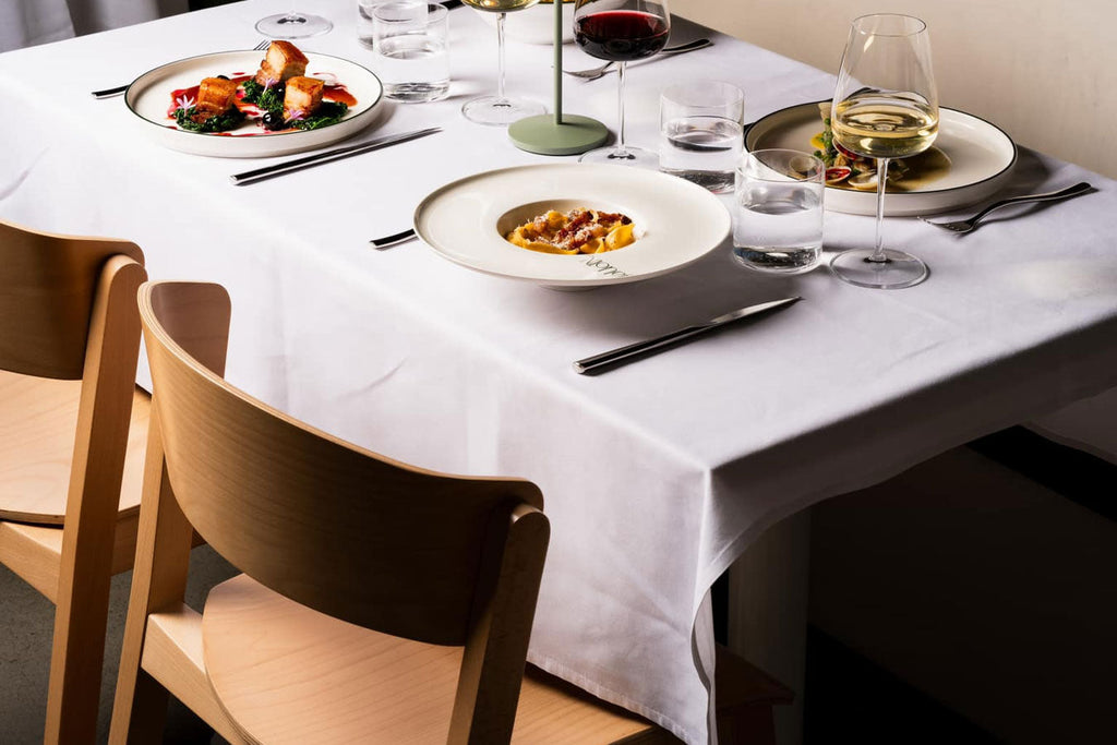 For this project, we supplied elegant Cava Side Chairs in natural beech timber for the interior, adding warmth and a touch of timeless charm. These were paired with custom white powder-coated Platter/Quantum Table Bases and durable Laminate Tops, bringing together practicality and refined aesthetics.