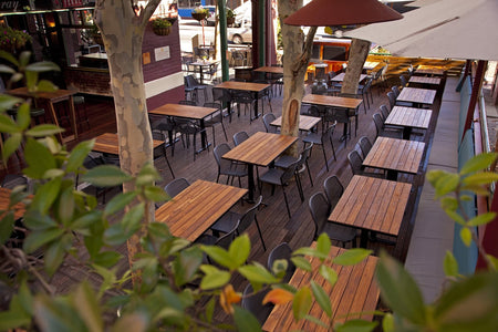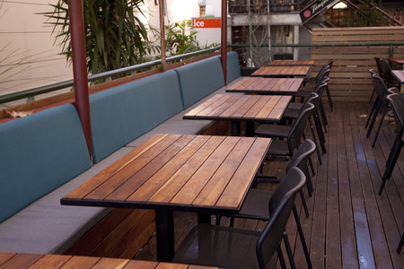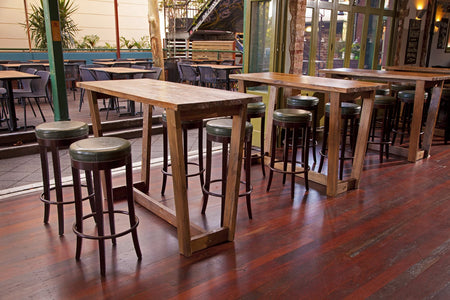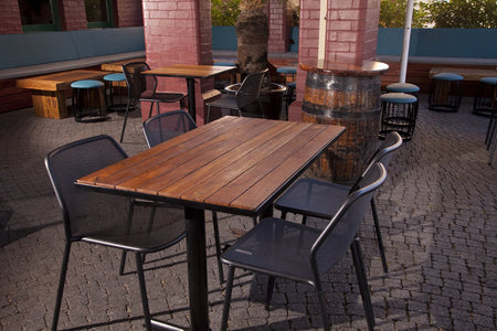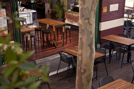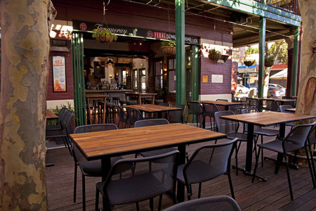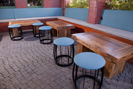 Furniture Options recently had the honor of assisting the tavern with a refurbishment. Recycled teak was used throughout the venue on dining tables, high tables and outdoors to compliment the heritage building. Traditional Polish bentwood timber stools with studded detail are seen along with traditional style bar stools in the restaurant.