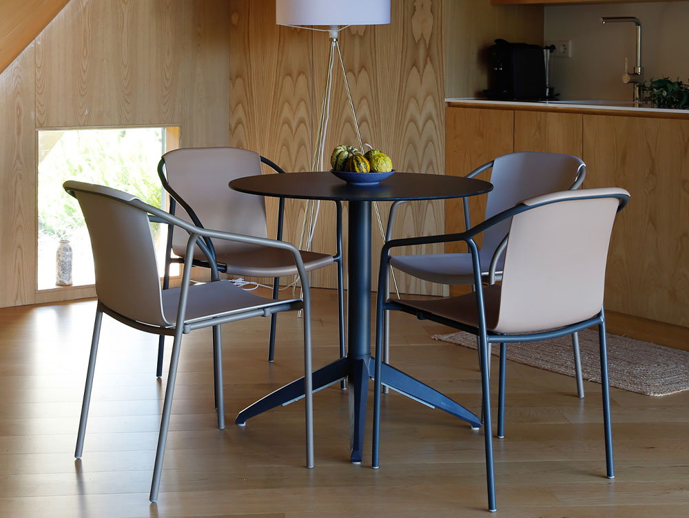 Manufactured in Portugal by Ezpeleta. Create warm and cosy spaces both indoors and out with the Rod Armchair. Featuring a lacquered aluminium structure and wide polypropylene seat, making them very easy to clean, they're also 100% recyclable.
