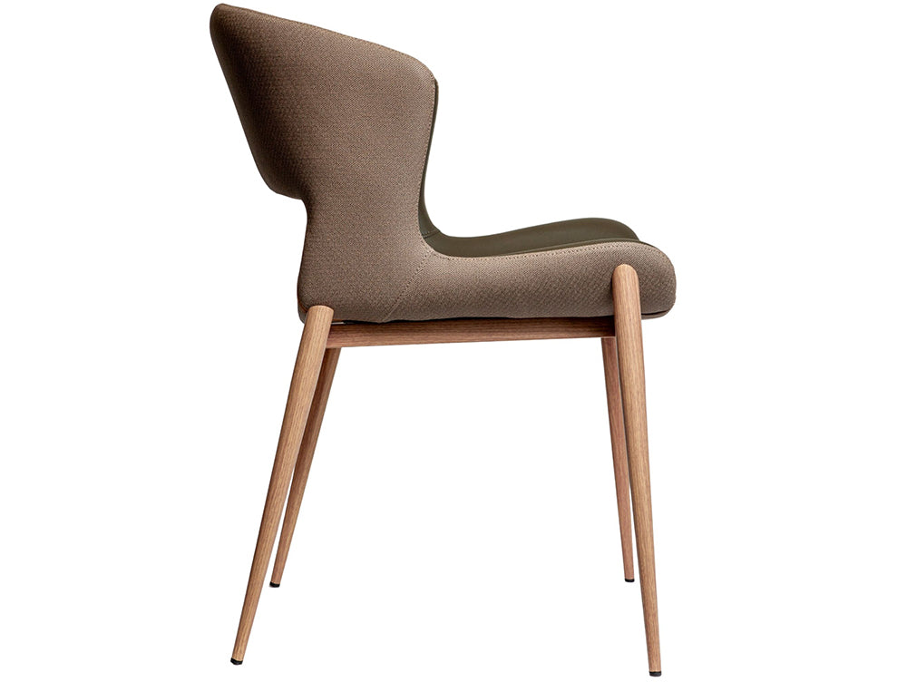 The inner seat is upholstered in a smooth PU finish, offering a refined, easy-to-maintain surface, while the outer shell introduces a contrasting textured fabric that adds depth and visual interest. This thoughtful combination of materials enhances both comfort and durability, making the chair as practical as it is elegant.