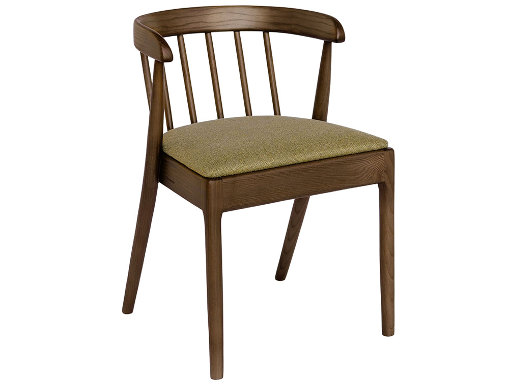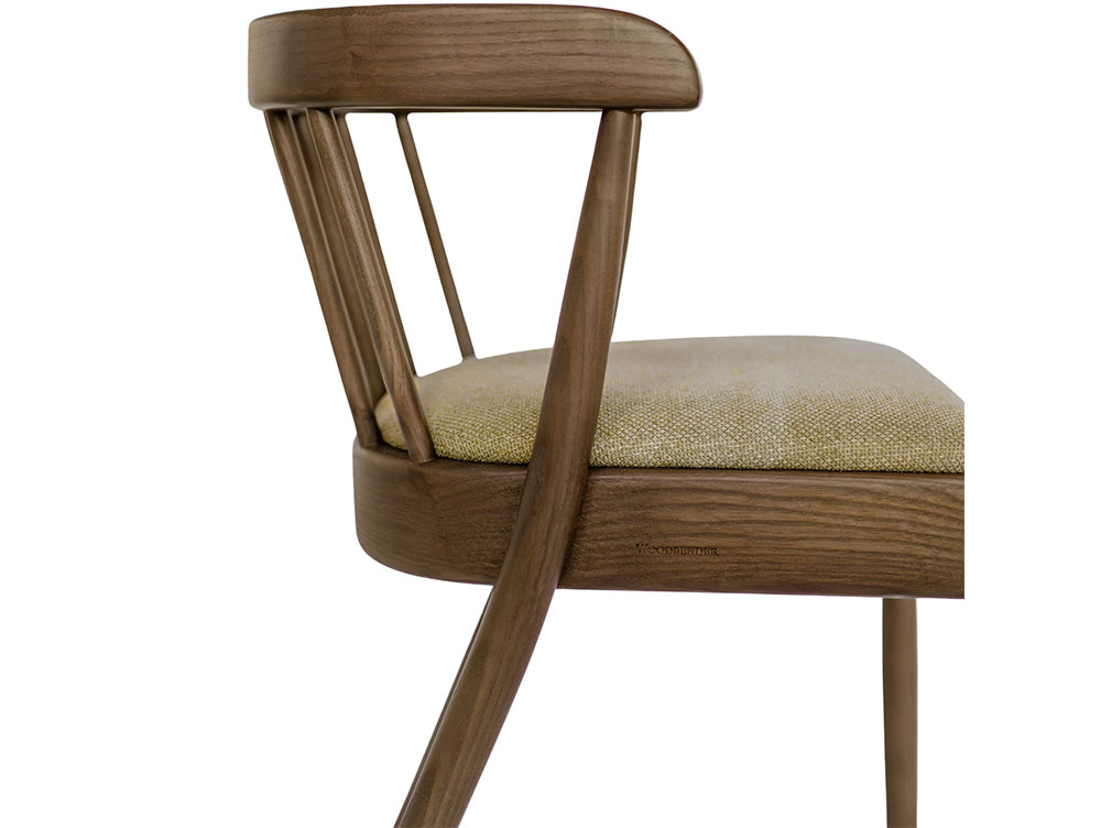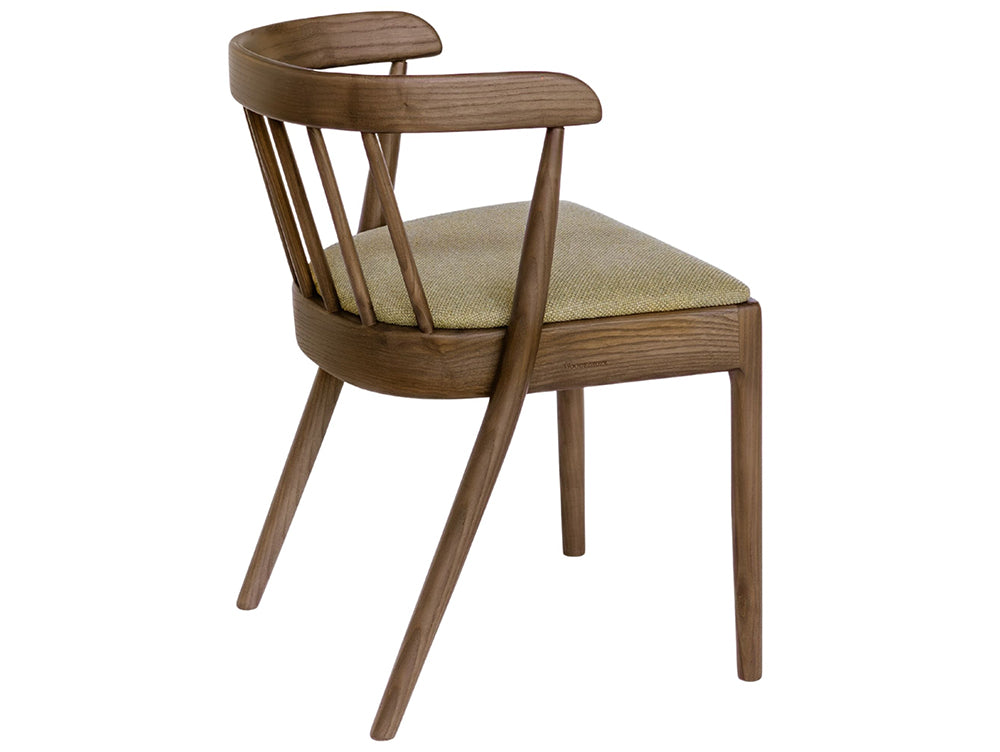 The Riga Chair, named after Riga, Latvia's capital known for its architectural elegance and craftsmanship, balances versatility, comfort, and refined design. Its spindle backrest and curved rail create a sense of lightness and sculptural clarity. Crafted from solid ash using traditional steam bending, it showcases fluid lines and natural warmth. Integrated armrests offer support while maintaining a compact profile that tucks neatly under tables. Lightweight yet enduring, the Riga Chair embodies understated elegance and considered craftsmanship.