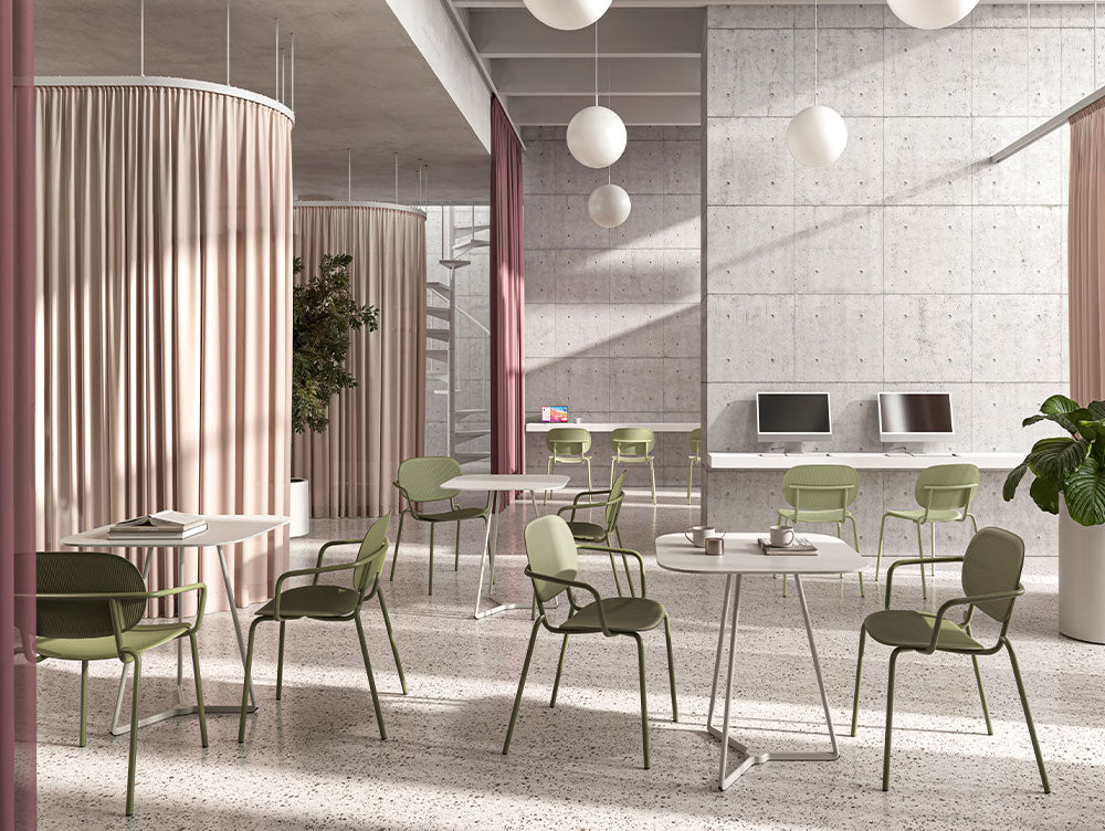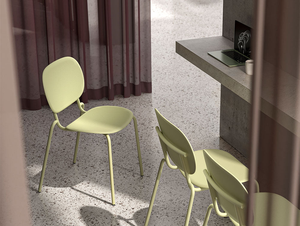 Crafted from certified regenerated plastic set upon a slender tubular metal frame, the Si‑Si Vibes forms part of S•CAB’s environmentally conscious Go Green collection. A particularly thoughtful detail is the bayonet‑lock attachment between backrest and frame, which ensures consistent thickness and prevents stress or tearing, underscoring the design’s functional resilience as well as its aesthetic sophistication.
