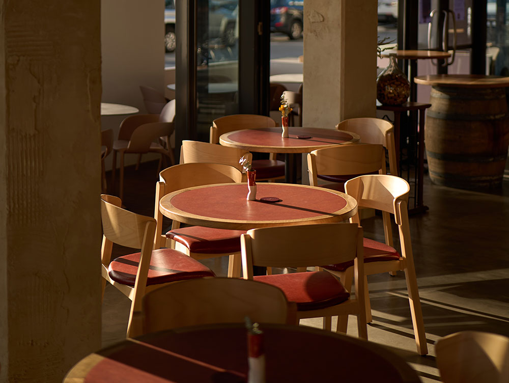 • Stackable • Suitable for indoor use • Material: European beech or oak • Custom upholstery options available • Timber Stains: Extensive range of stain and paint finishes available